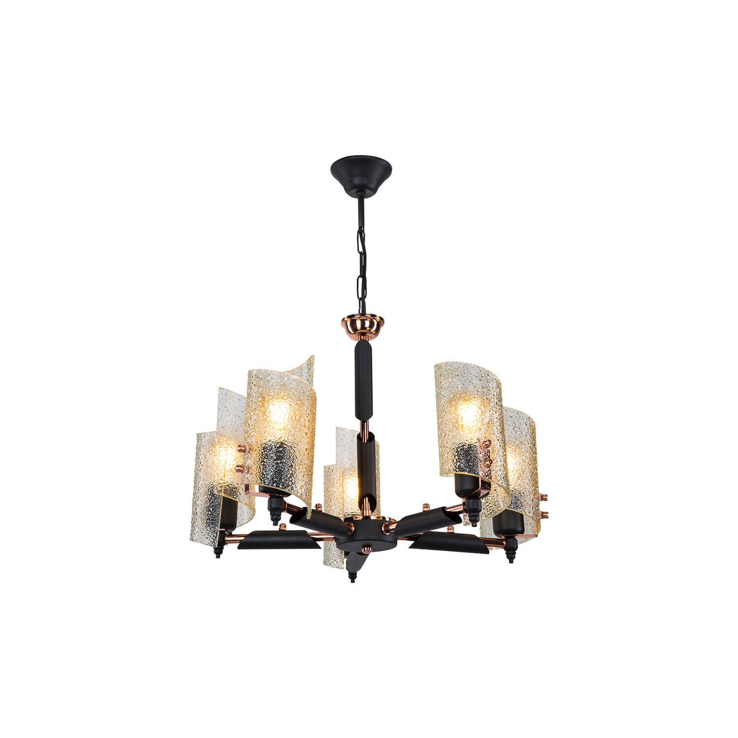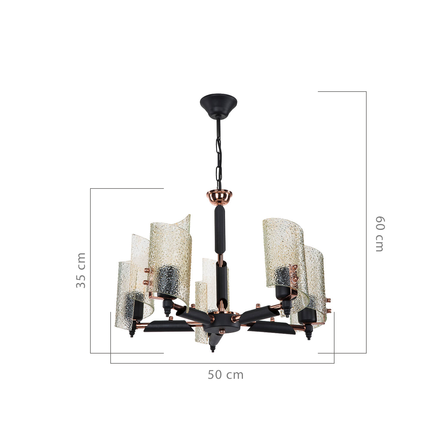 . Bakır Lak / Elektrostatik boyalı metal kasa ile bal kristal camların harmanlanmasıyla farklı bir aydınlatma konsepti oluşturulmuştur.