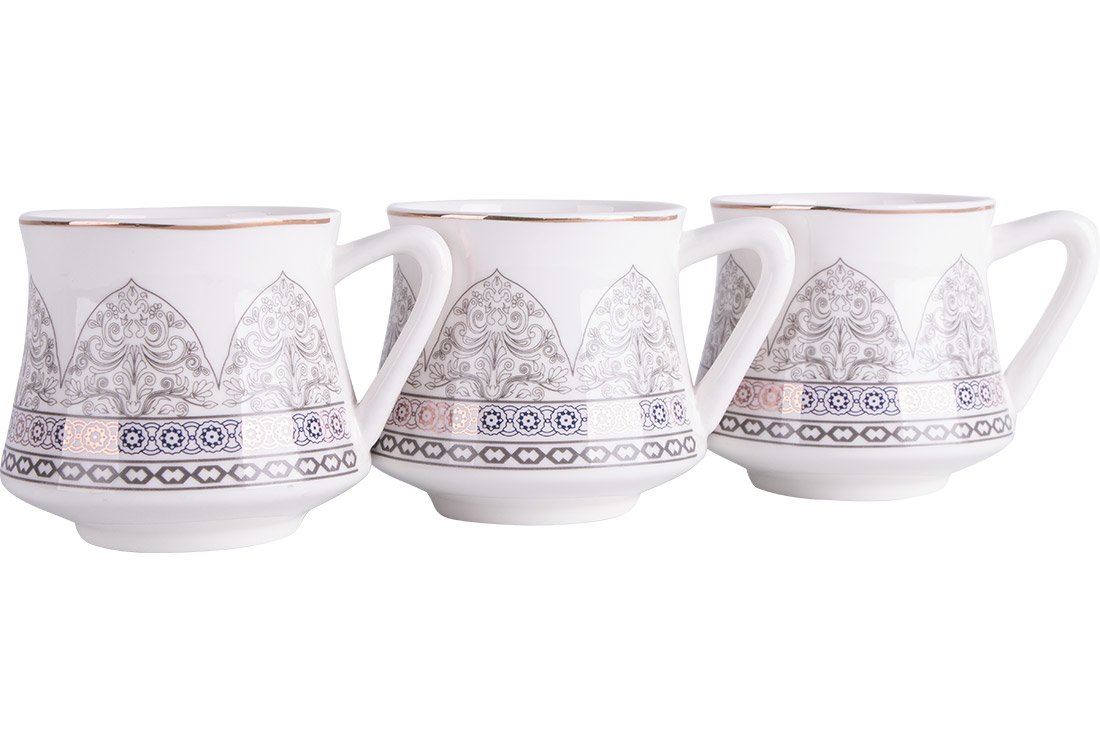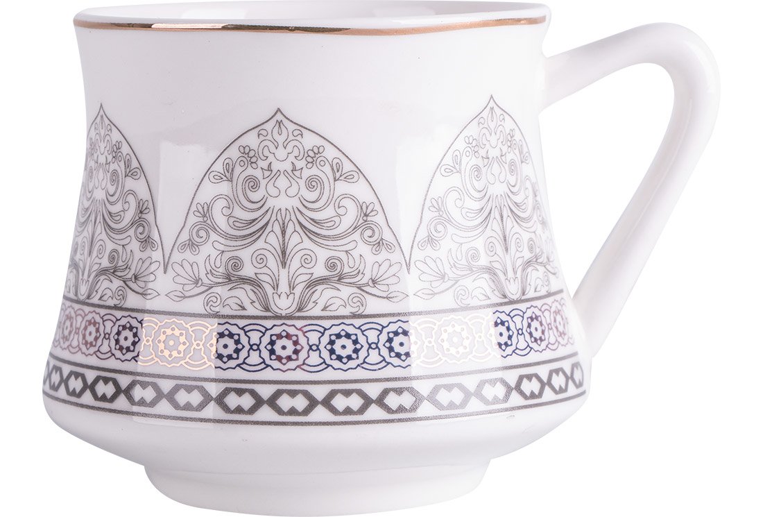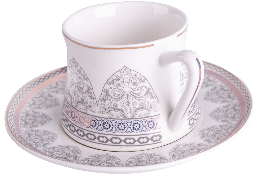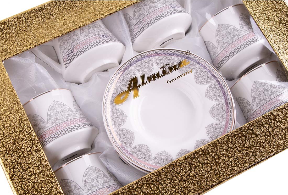 Teslimat ve Boyutlar: 1 x Almina 6'lı Türk Kahve Seti Porselen 75ml | Beyaz Gümüş Lila | Al-5851