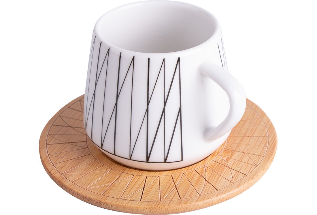 Teslimat ve Boyutlar: 1 x Hayal 6'lı Türk Kahve Seti Bambu Porselen | Beyaz Siyah | By-alz-p180197-4