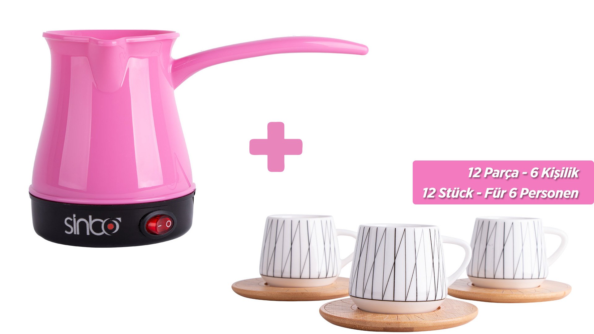 Teslimat ve Boyutlar: 1 x Sinbo Pembe Elektrikli Türk Kahve Makinesi & Hayal 6'lı Türk Kahve Seti