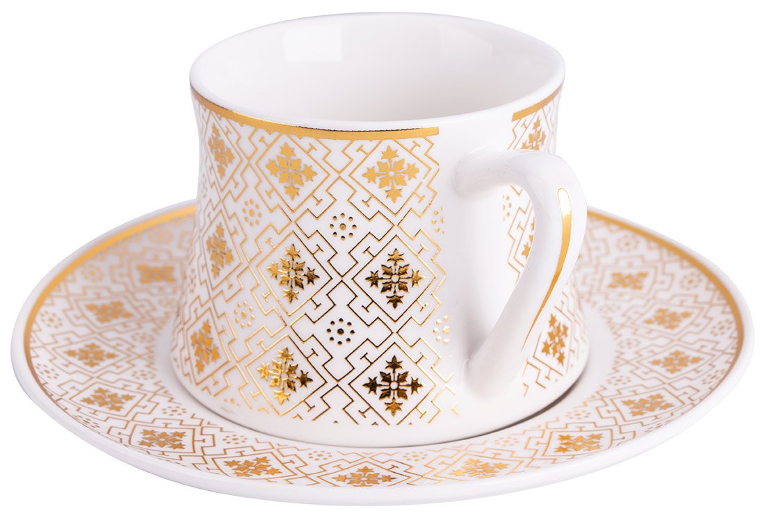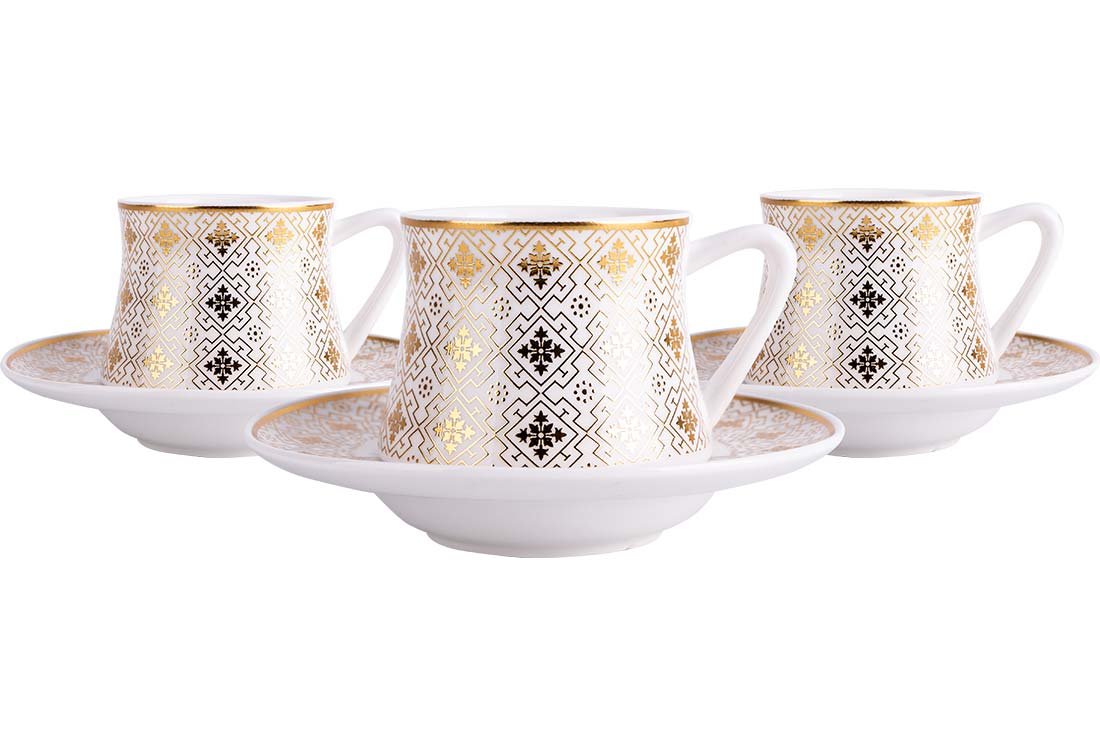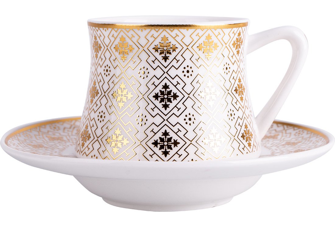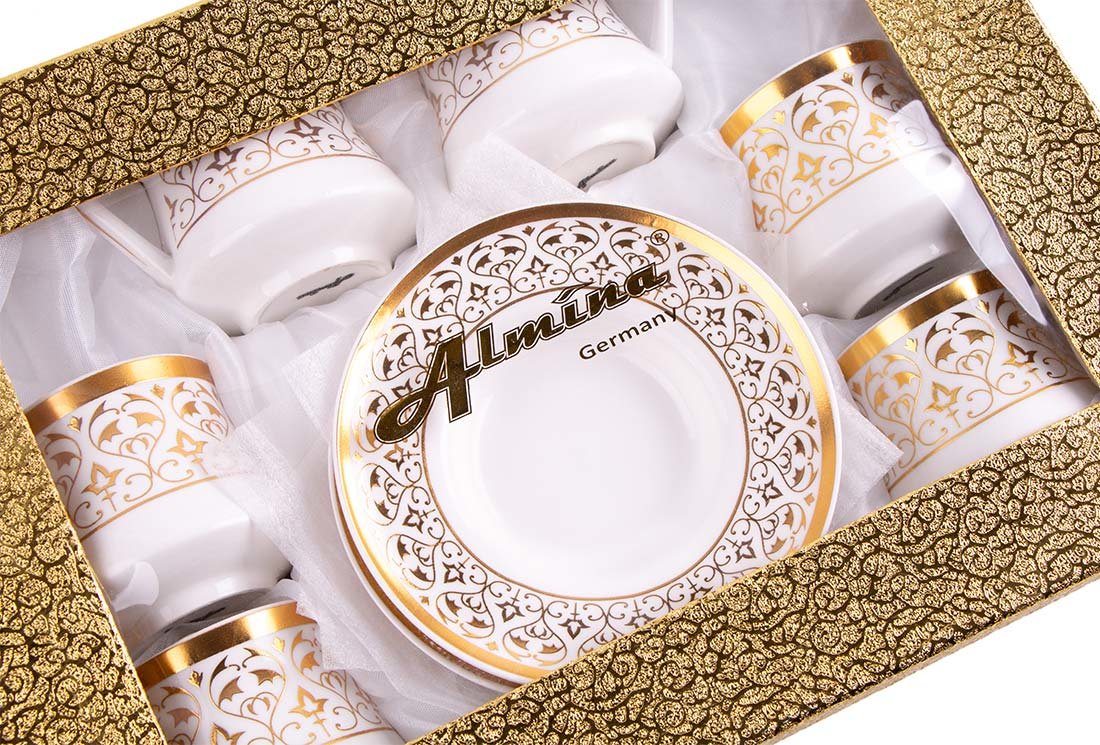 Teslimat ve Boyutlar: 1 x Almina 6'lı Türk Kahve Seti Porselen 75ml | Beyaz Altın| Al-5868