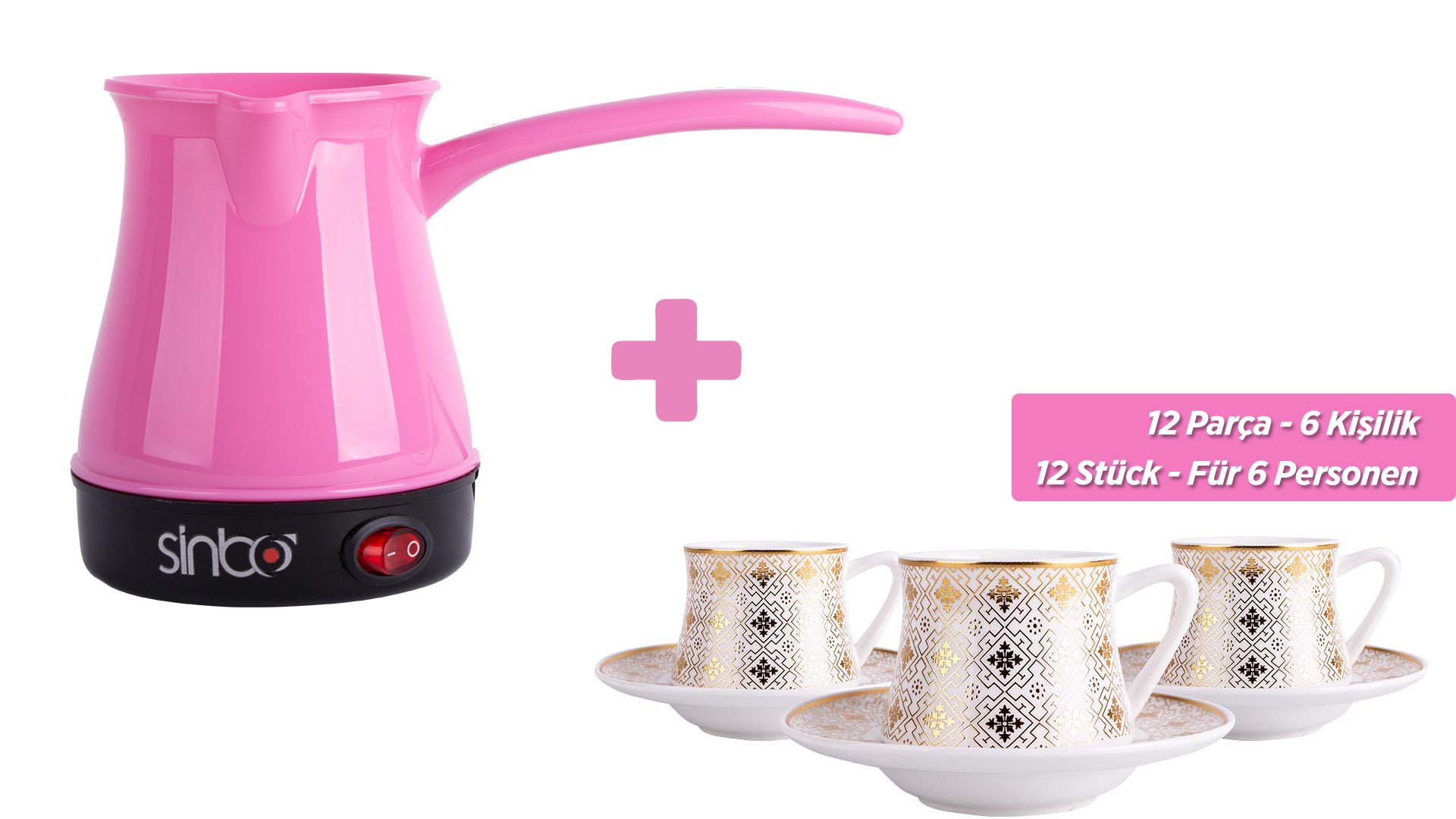 Ürün Adı: "Sinbo Pembe Elektrikli Türk Kahve Makinesi & Almina 6'lı Türk Kahve Seti"