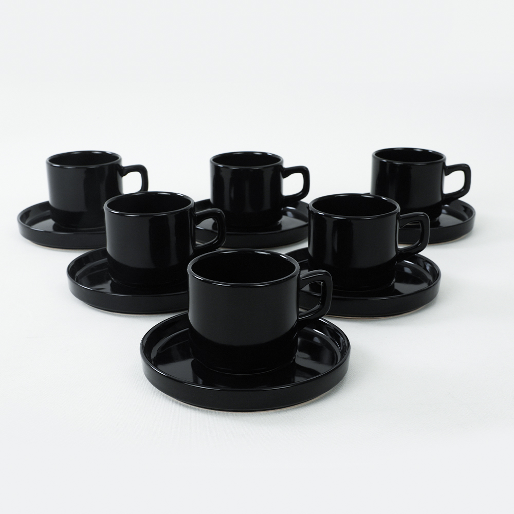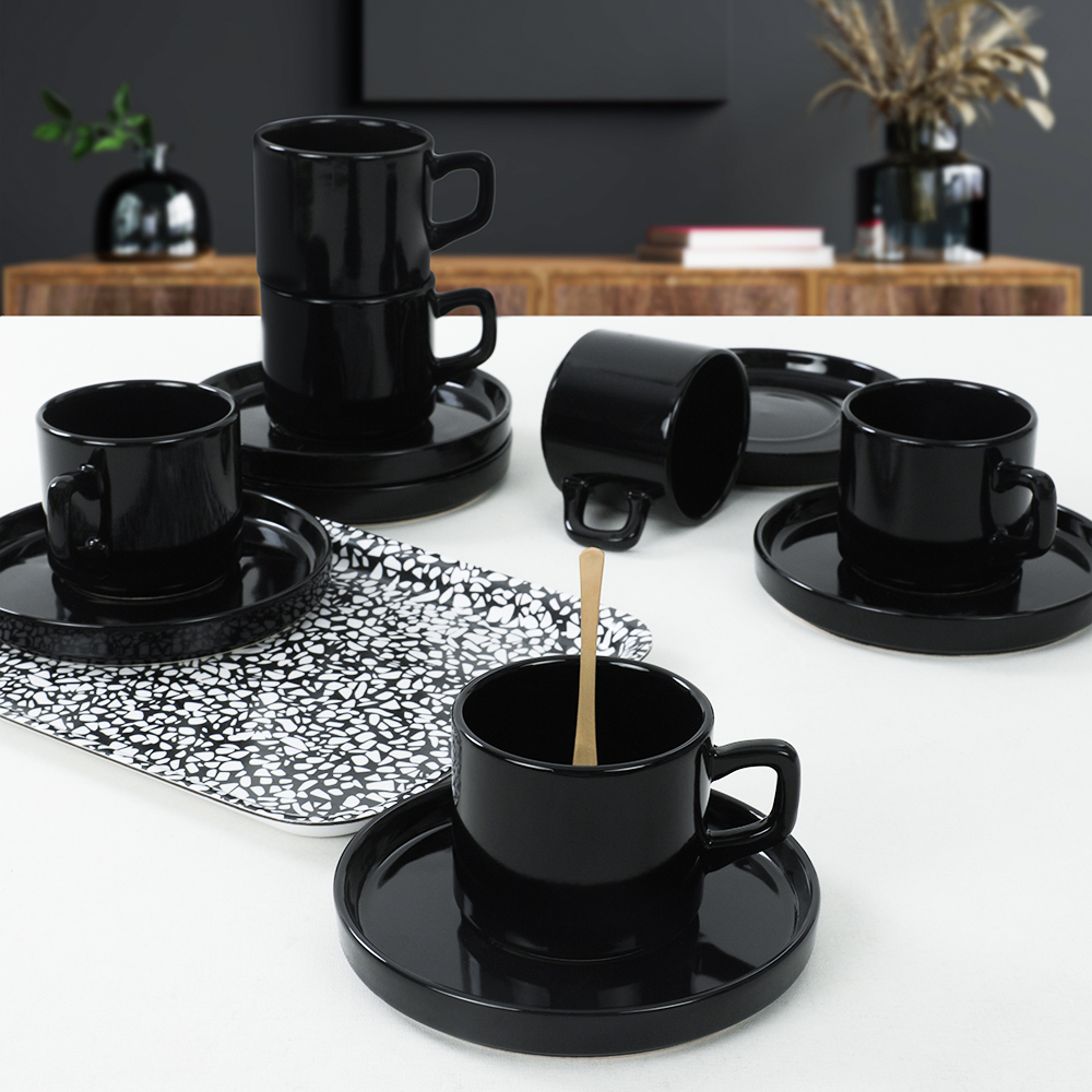 Buna dair başka bağlantılar "Siyah Stackable Çay Fincan Takımı 12 Parça 6 Kişilik | Keramika"