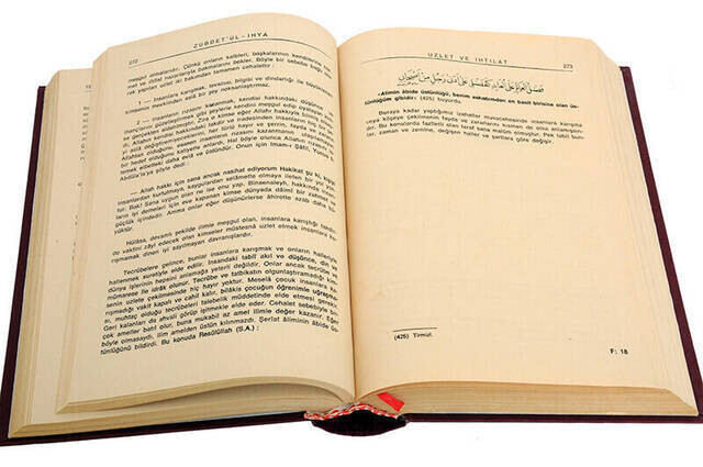 Tercüme ettiğimiz ZüBDET-ül-İHY ve Acirc; 34 bölümden ibarettir. Her bö-lümde geçen âyet ve hadislerin hem arapça metinleri verilmiş, hem de dipnotta yerleri gösterilmiştir. Burada dikkat edilecek hususlardan biri de imam-ı Gazalî’nin furu’da mezhebinin şâfiî olmasıdır. Bu sebeple fıkhî meseleleri Şafiî mezhebi açısından ele alır. Hanefî mezhebi ile uyuşma-yan yerler gelince dipnotta izah edilmiştir. Buna rağmen Hanefî mezhe-bine mugayir bir husus görülürse meselenin Şâfiî mezhebine göre izah edildiği unutulmamalıdır.