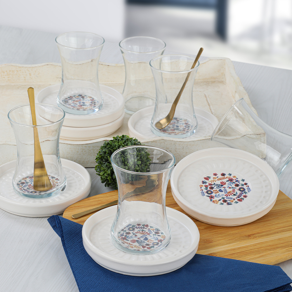 Springtime Yakamoz Cam Çay Takımı 12 Parça 6 Kişilik - 19558 | Keramika