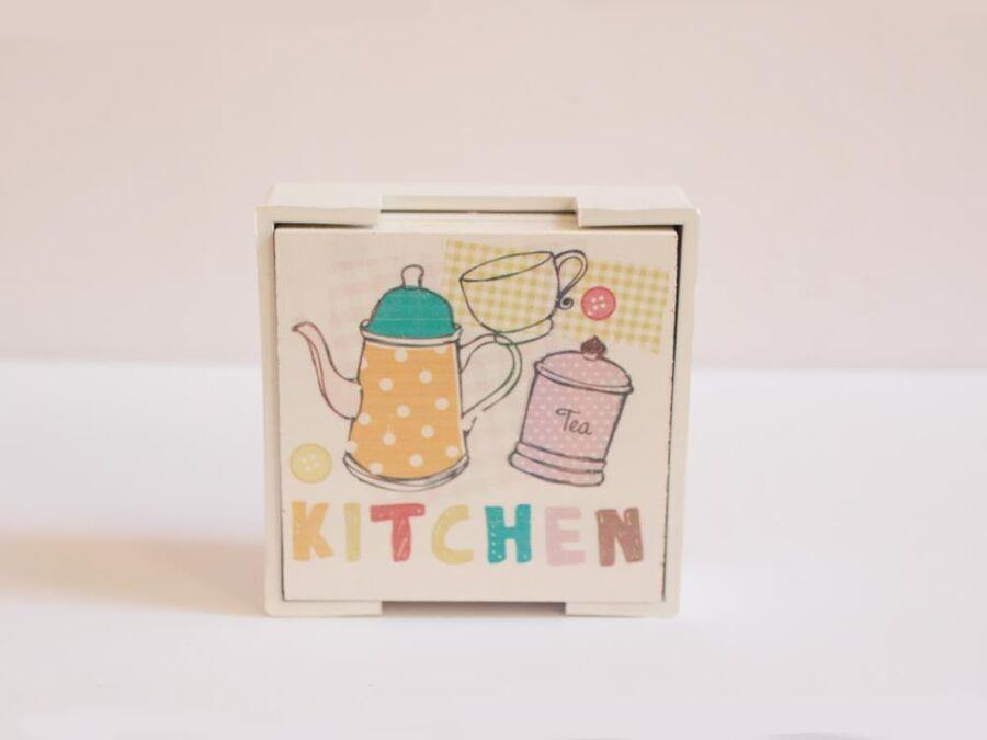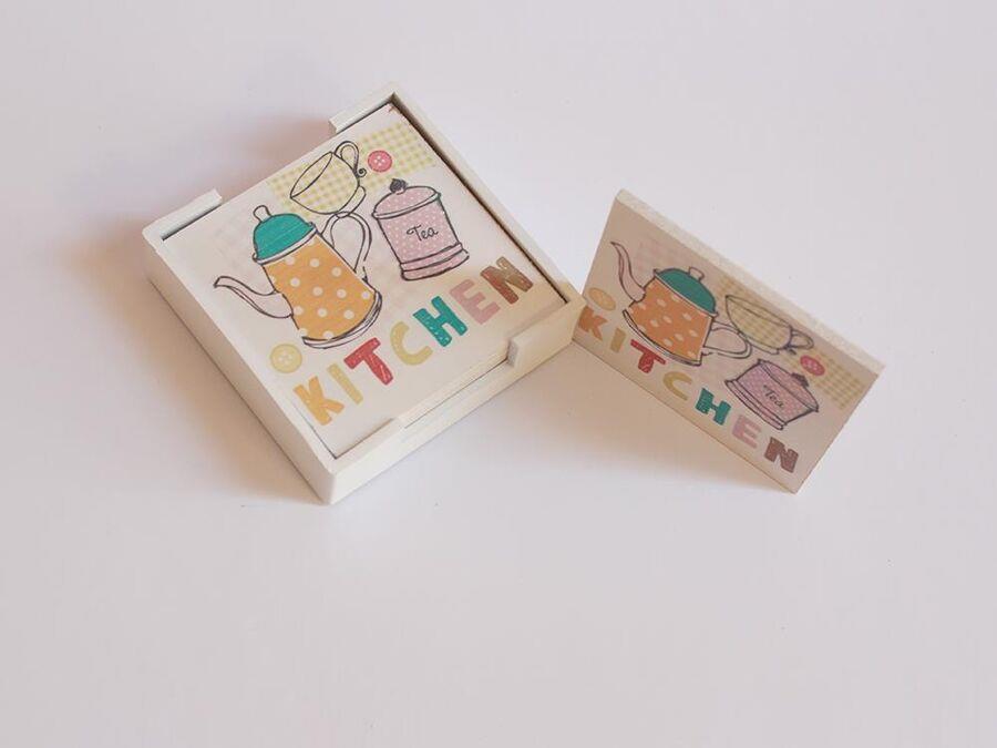 Ürün Adı: "Standlı Ahşap Bardak Altlığı 6lı Set Kitchen"