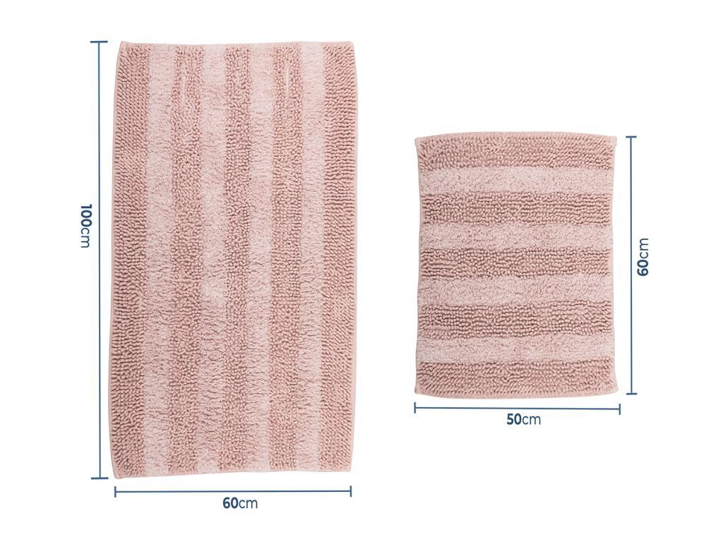 Ürün Adı: "Strip Pamuklu Dikdörtgen 2li Banyo Paspas Takımı Pudra"