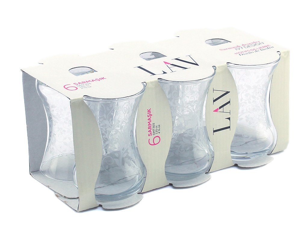 Teslimat ve Boyutlar: 1x Lav Sarmaşık Çay Bardağı Seti 6 Adet | 135cc | Dmt-303-sb2809