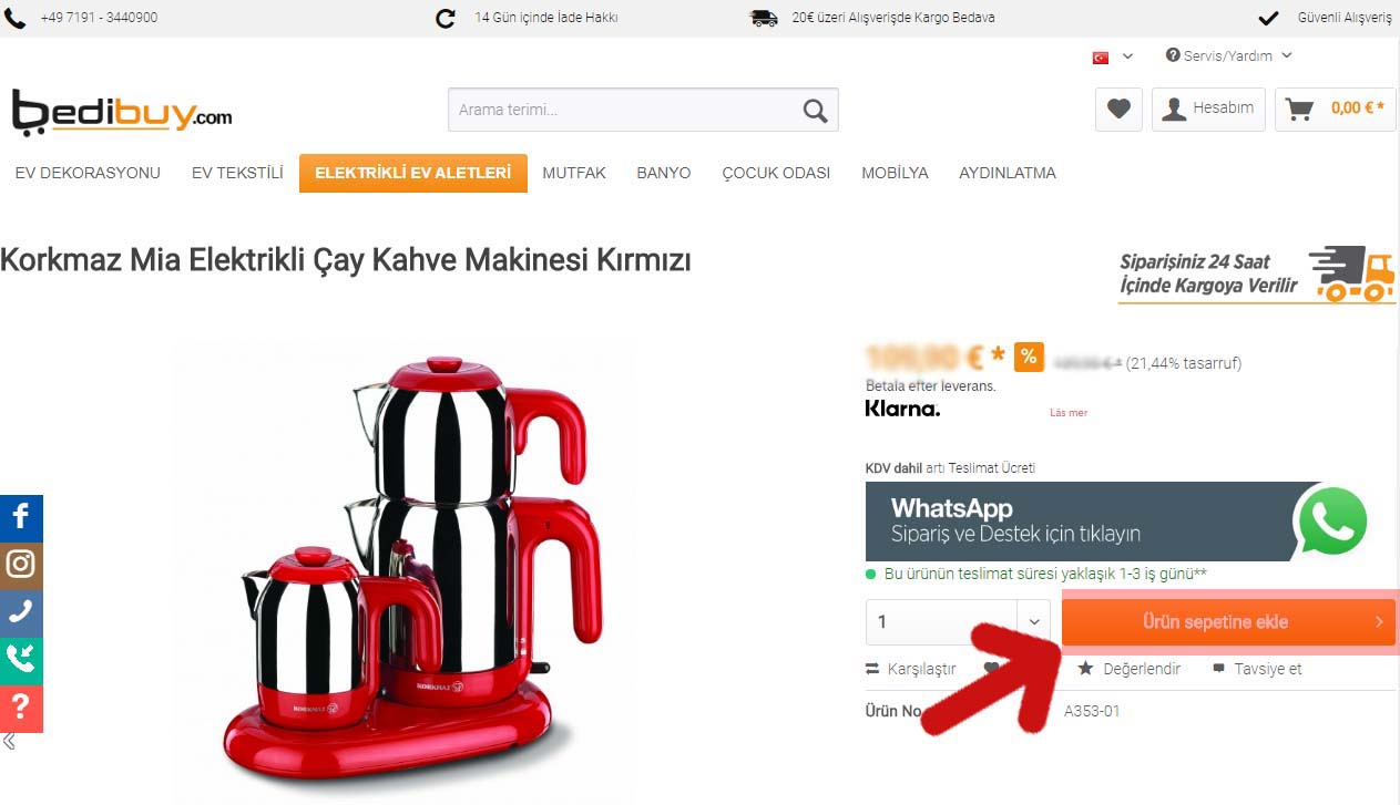 Kapıda Ödeme Yöntemi sadece Almanya için teslimatlar için geçerlidir, diğer ülkelere teslimat içeren siparişlerde kullanılamaz.