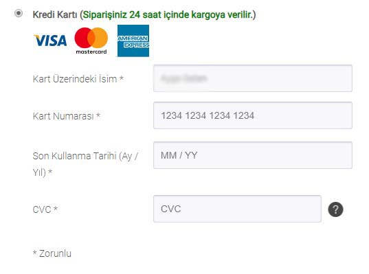 Sitemizden siparişleri tamamladığınızda bu seçenek ile kredi kartı bilgilerini girerek güvenli ve hızlı bir şekilde hemen ödemenizi yapabilirsiniz. Bu ödeme yöntemini seçtiğinizde en son Sipariş Onayla buttonuna tıkladığınız zaman direk Kredi Kartı ile ödeme sayfasına yönlendirileceksiniz.