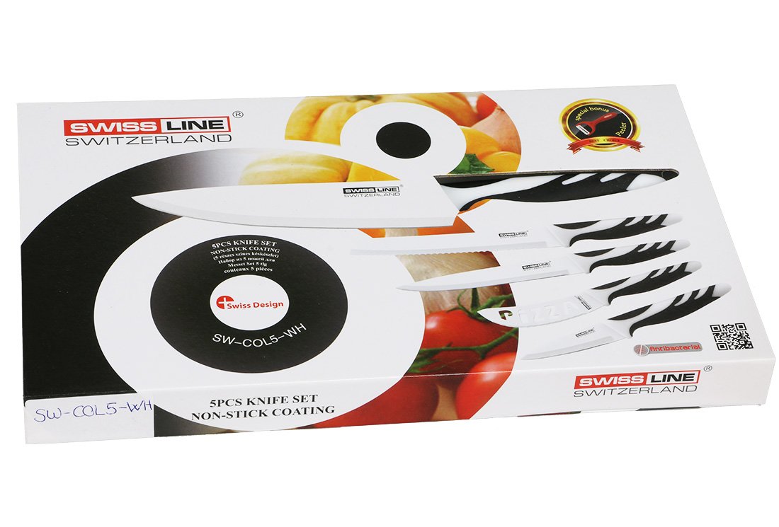 Teslimat ve Boyutlar: 1 x Swissline 5 Parça Bıçak Seti | Siyah Beyaz | SW-COL5-WH