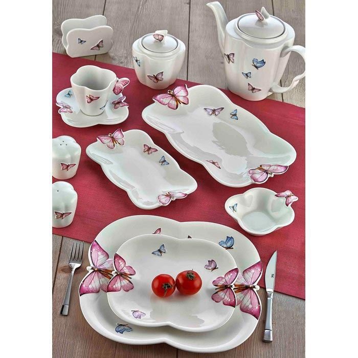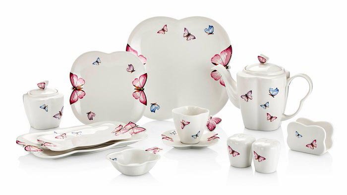 Teslimat: 1x Taç Butterfly 36 Parça Kelebek Desenli Porselen Kahvaltı Takımı | Beyaz | 6 Kişilik