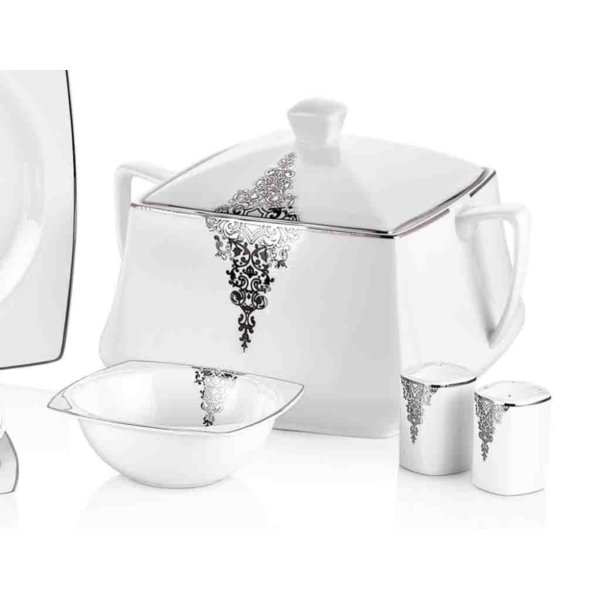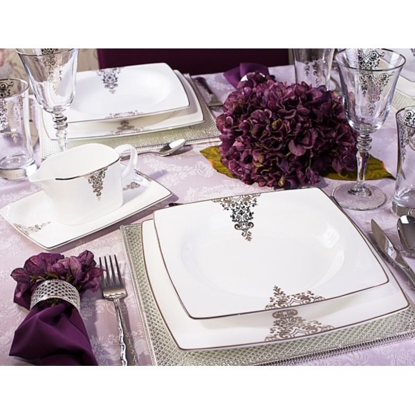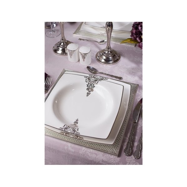 Ürün Adı: "Taç Elegance Lace Bone Collection 85 Parça Yemek Takımı | Platin | 12 Kişilik | TAC-1468"