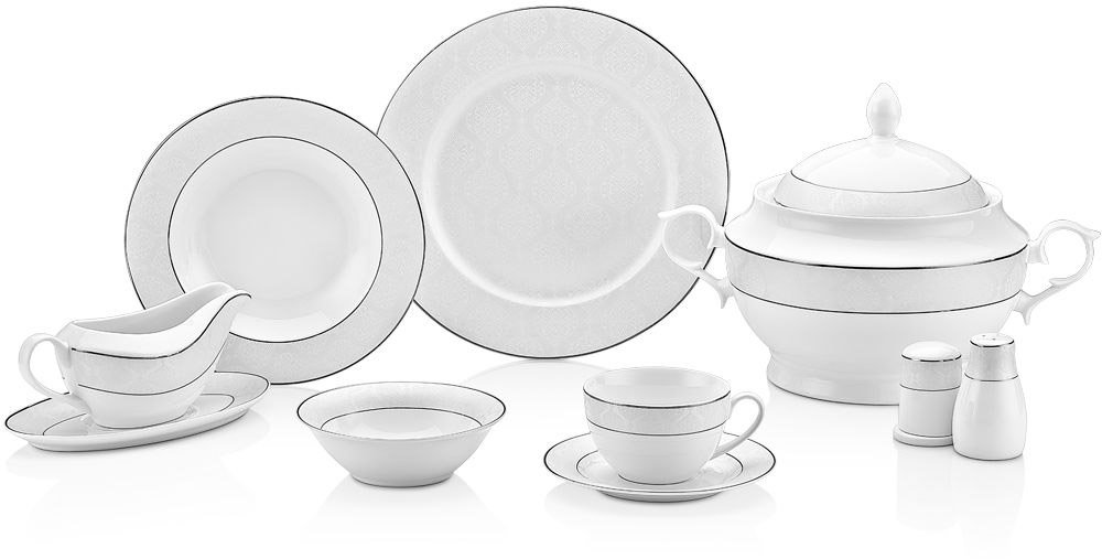 Taç Troya Leda 85 Parça Porselen Yemek Takımı I Yuvarlak | 12 Kişilik I TAC-2045 I