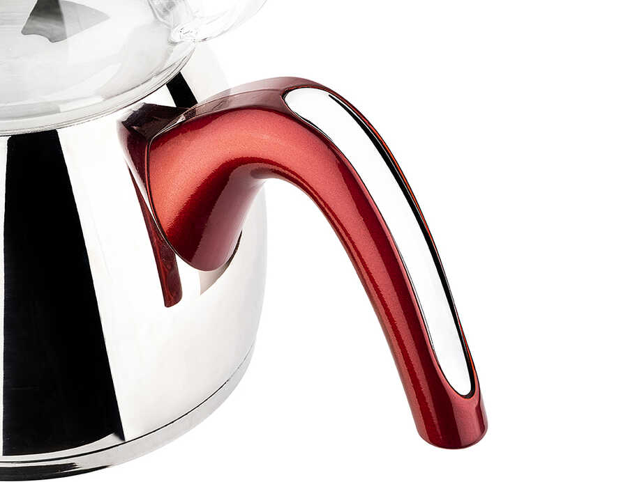 Teslimat: 1 x Tantitoni | Kırmıız Konik Orta Boy Paslanmaz Çelik Çaydanlık Takımı 980/1700ml