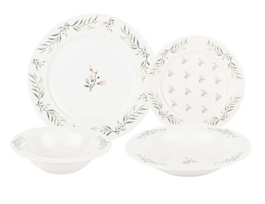 Ürün İçeriği: 6 adet Servis Tabağı(26cm), 6 adet Pasta Tabağı(20cm), 6 adet Çukur Tabak(22cm), 6 adet Kase(17cm)