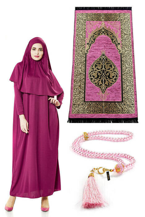 Ürün Adı: "Tek Parça Namaz Elbisesi - Seccade - Tesbih - İbadet Seti - Fuşya"