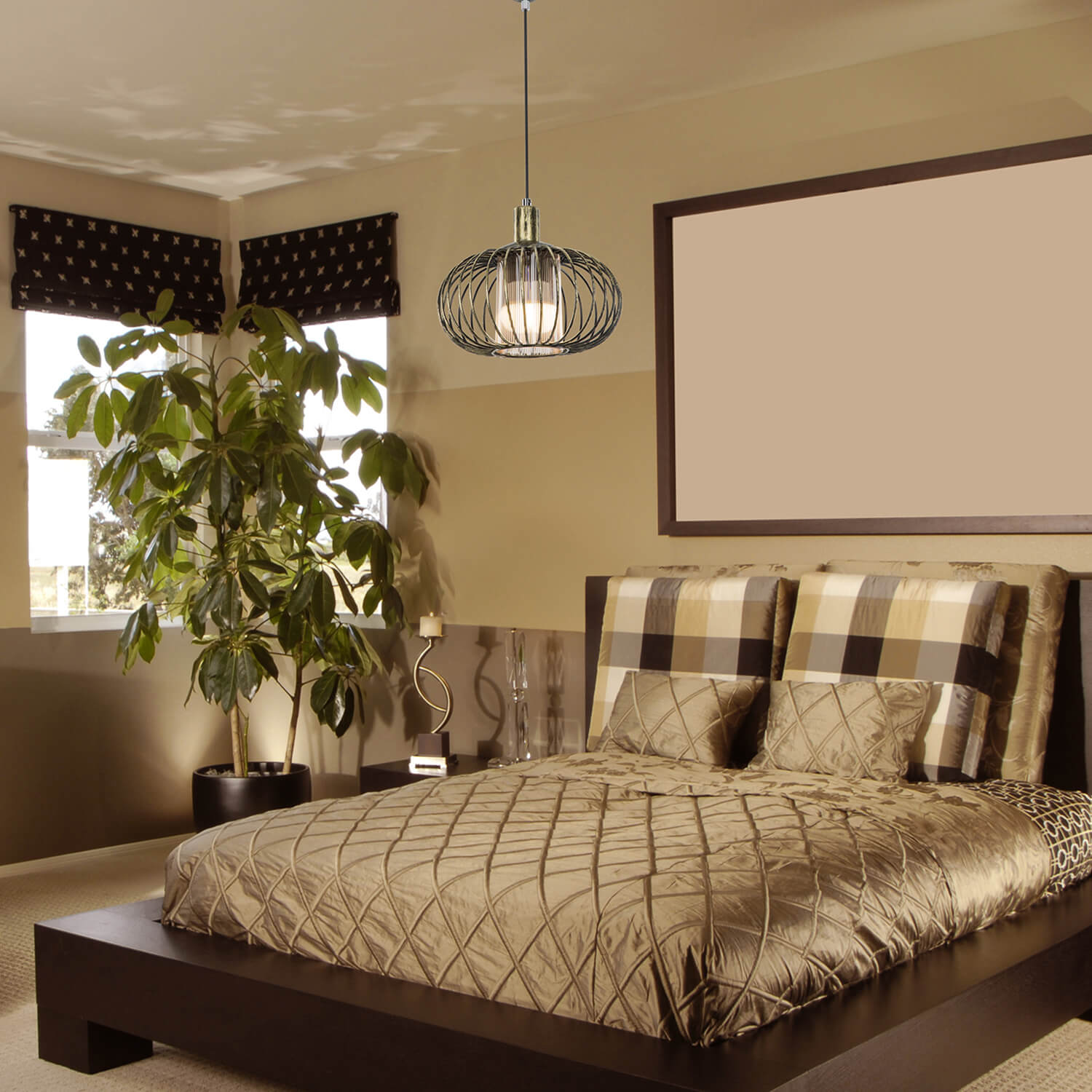Metal ile tel kafes iskeletin birleşmesiyle ve modern tarzı yansıtan çizgisiyle bulunduğu odaya ayrı bir ambiyans katar.