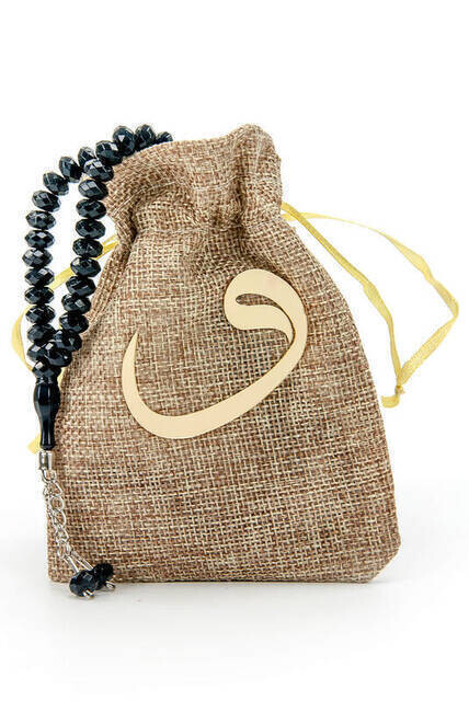 Tesbih - Allah Vav İsme Özel Plaka Seçenekli - Jüt Kumaş Keseli - 99' lu - Mevlid Hediyeliği