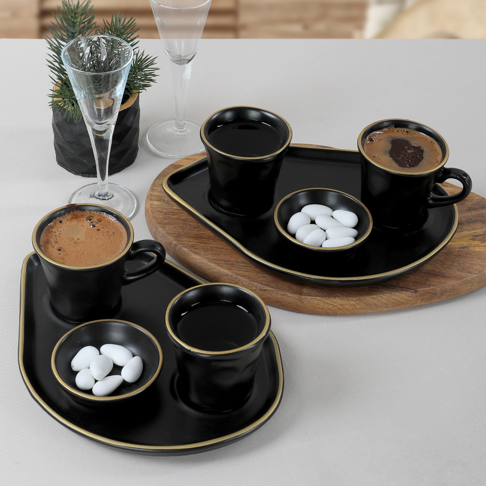 Kahve saatleriniz Keramika 2 kişilik Gold Moka Kahve Takımı ile farklı bir boyut kazanıyor! Yenilikçi formu ve asil renkleri ile usta ellerde üretilen bu kahve takımı aynı zamanda kalite ve dayanıklılığı beraberinde getiriyor. Asil renkleri ile misafirlerinizin dikkatini çekerek herkesin beğenisini sağlayacak olan bu kahve takımı aynı zamanda sevdiklerinizi mutlu etmek için hoş bir hediye seçeneği olacaktır.