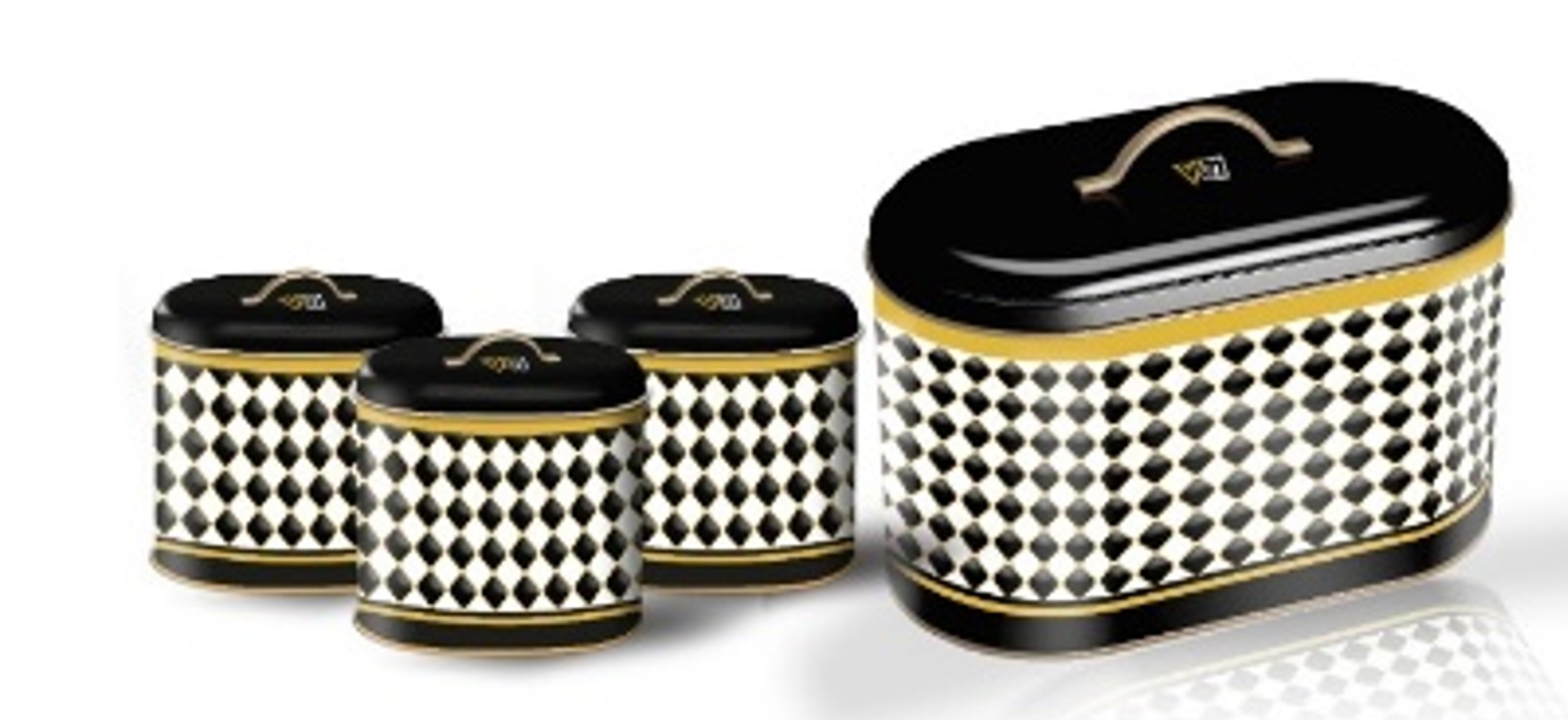 Ürün Adı: "Vip Ahmet | Dama Desen Kulplu Metal Ekmeklik Baharatlık 4 Parça"