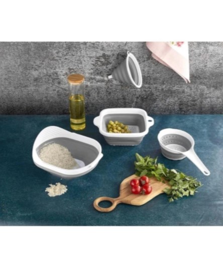 - Katlanır akerdeon süzgeç seti. Katlanabilir özelliği sayesinde mutfaklarınızda yer tasarrufu sağlar.