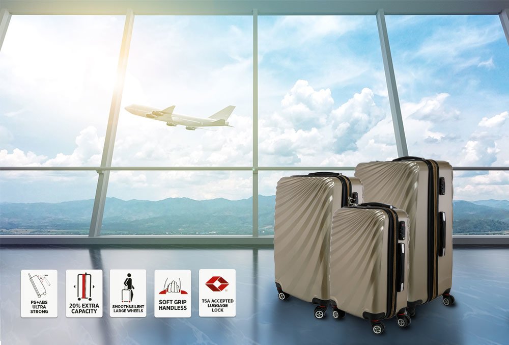 Teslimat ve Boyutlar: 1 x Viviana Hard Case 3'lü Bavul Seti 360° Dönen Tekerlekli | Bej | TSA Kilitli | S6277-champagne