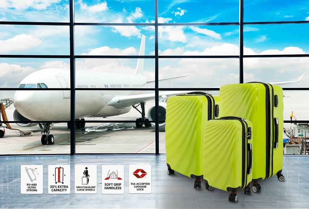 Teslimat ve Boyutlar: 1 x Viviana Hard Case 3'lü Bavul Seti 360° Dönen Tekerlekli | Yeşil | TSA Kilitli | S6277-green