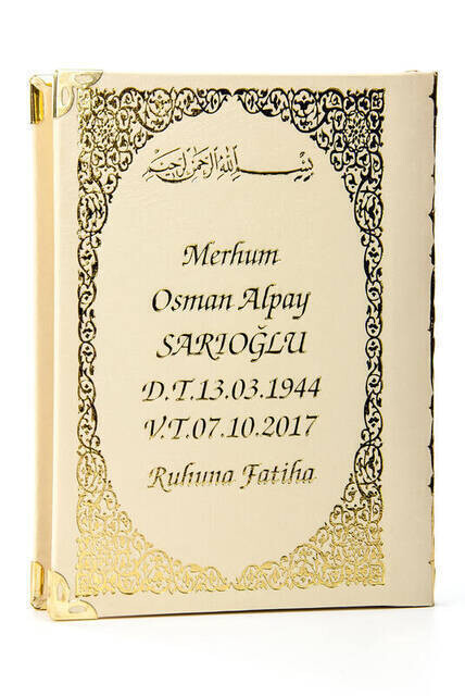 Buna dair başka bağlantılar "50 ADET - İsim Baskılı Ciltli Yasin Kitabı - Çanta Boy - 128 Sayfa - Tesbihli - Şeffaf Kutulu - Krem"