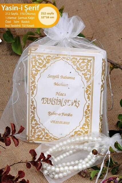 Buna dair başka bağlantılar "50 ADET - İsim Baskılı Ciltli Yasin Kitabı - Çanta Boy - 192 Sayfa - İnci Tesbihli - İslami Hediyele"