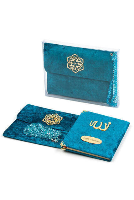 Ürün Adı: "Kadife Kaplı Yasin Kitabı - Çanta Boy - İsme Özel Plakalı - Tesbihli - Keseli - Kutulu - Petrol Renk"