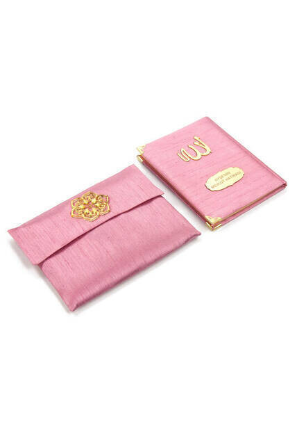 Ürün Adı: "Şantuk Kumaş Kaplı Yasin Kitabı - Çanta Boy - İsme Özel Plakalı - Keseli - Pembe Renk - Mevlid Hediy"