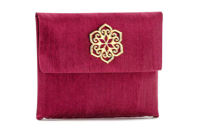 • Altın Renk Pleksiden Kesilmiş Desenli Şantuk Kumaş Kese